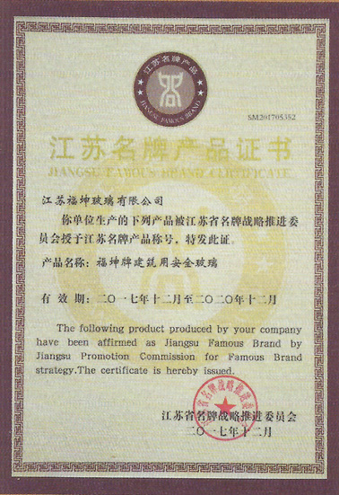江蘇名牌產(chǎn)品證書